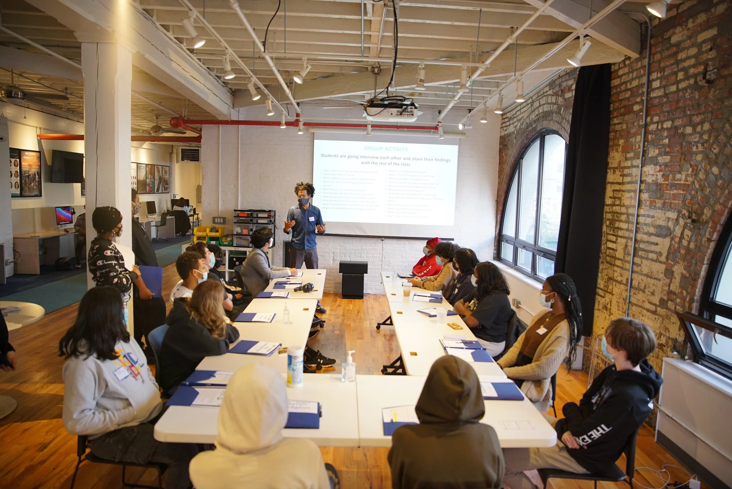 Instructor Hugo Rojas and Ebony Hatchett explain a fun group interview exercise for the students in the 2021-2022 Doc Lab.